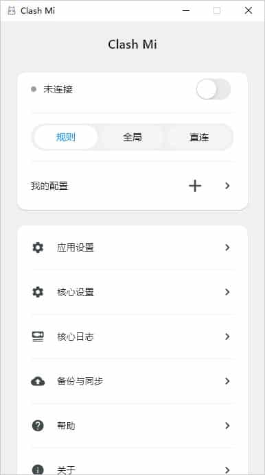 Clash Mi是基于Mihomo内核Android安卓手机、iOS苹果手机、macOS苹果电脑、Windows系统、Linux系统平台下一款多平台网络代理软件客户端,支持翻墙协议有Shadowsocks (SS)、ShadowsocksR (SSR)、Trojan、V2Ray等科学上网协议。